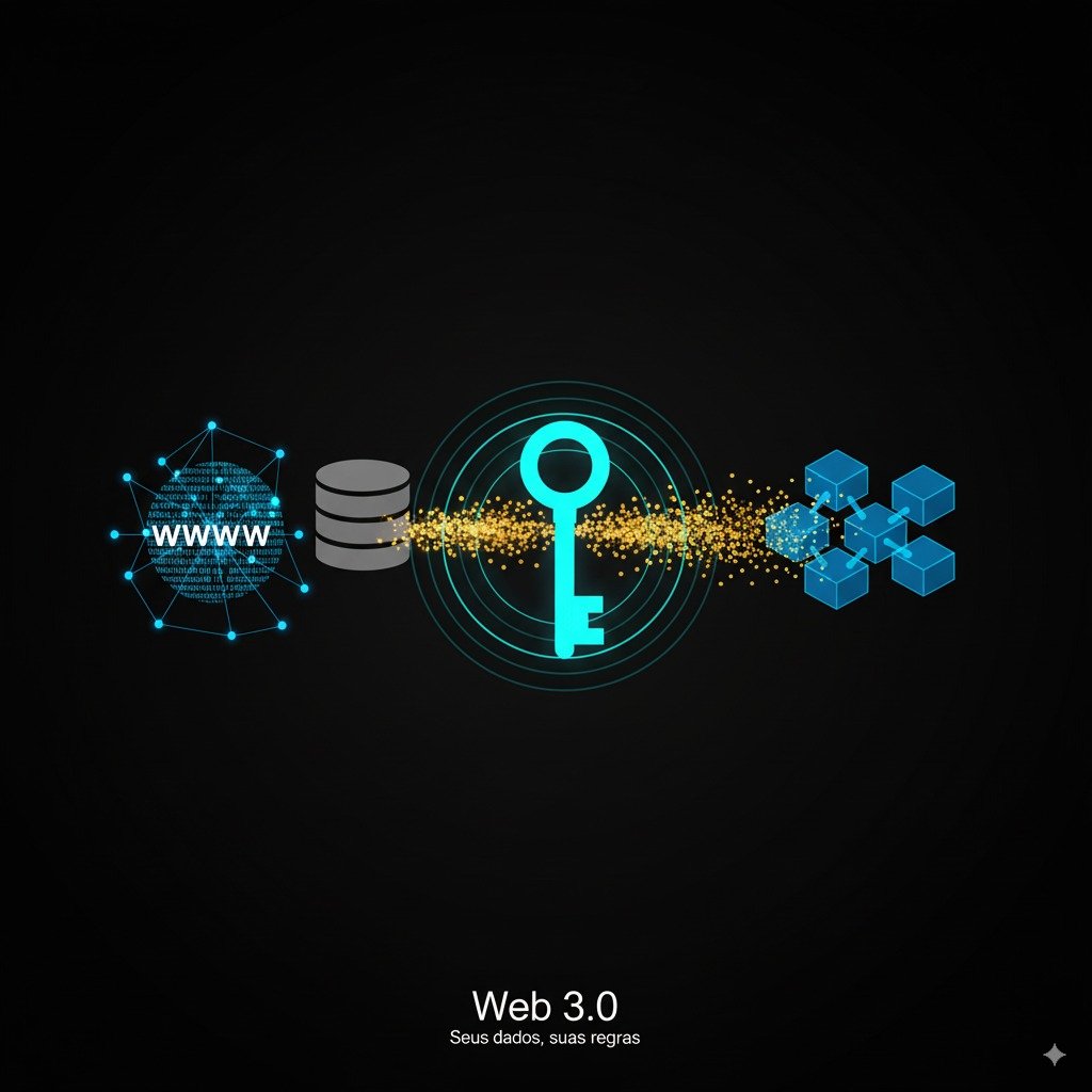Para compreender a magnitude da Web3, precisamos fazer uma breve viagem no tempo. A Web 1.0 dos anos 90 era estática – sites simples onde você apenas consumia informação. Mais tarde, a Web 2.0, que vivemos hoje, trouxe a interatividade e as redes sociais, mas com um preço: entregamos nossos dados pessoais em troca de serviços “gratuitos”.